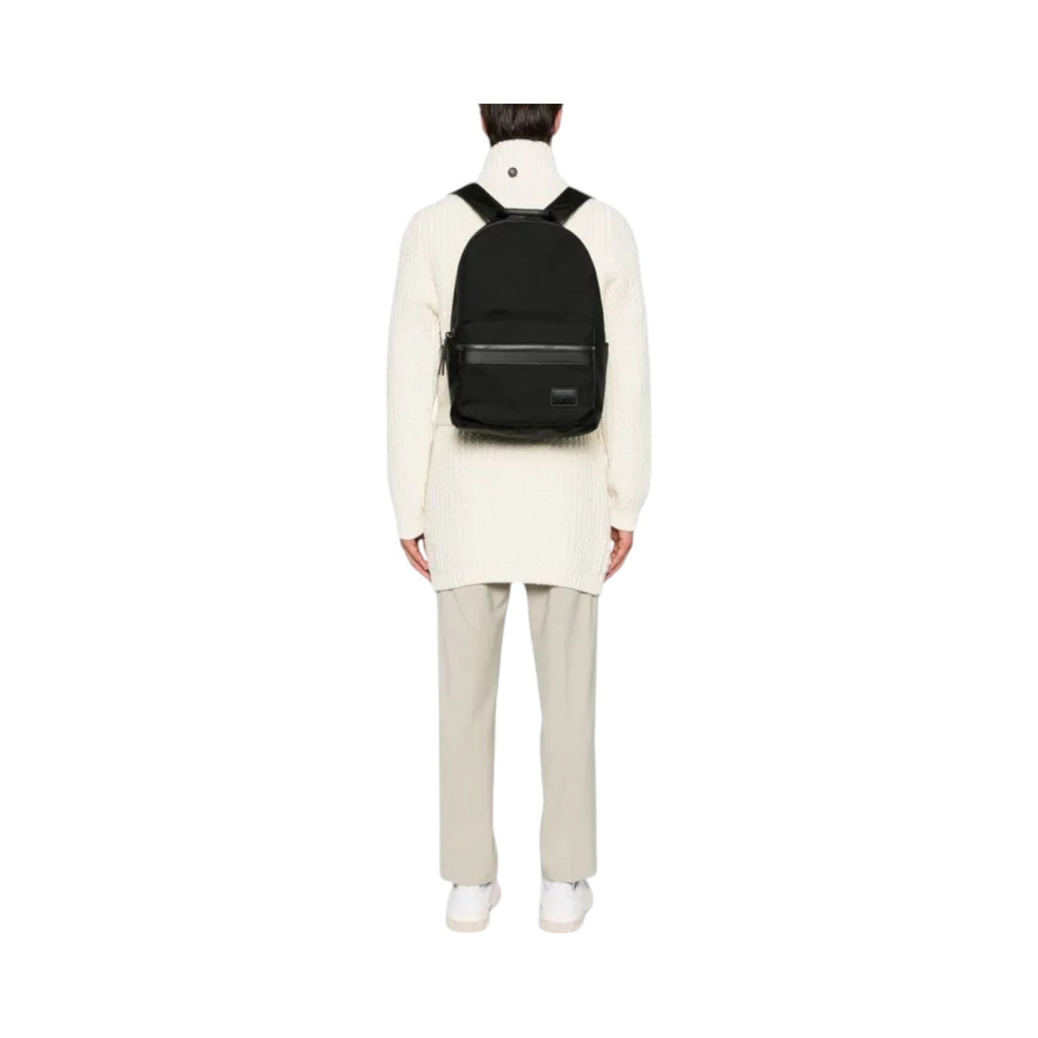 Mochila de nailon y piel negra