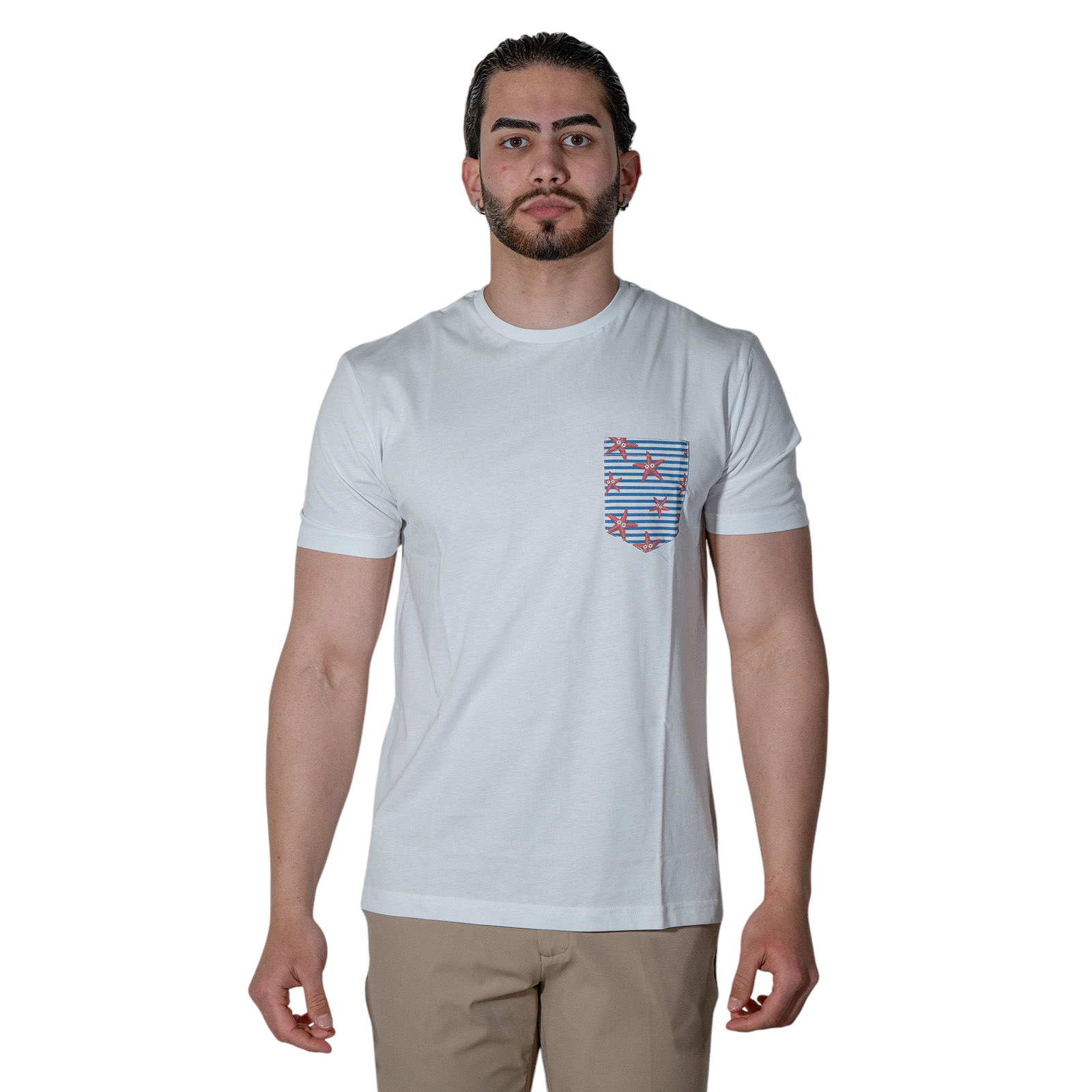 CAMISETA CON BOLSILLO ESTRELLAS MARINAS BLANCA