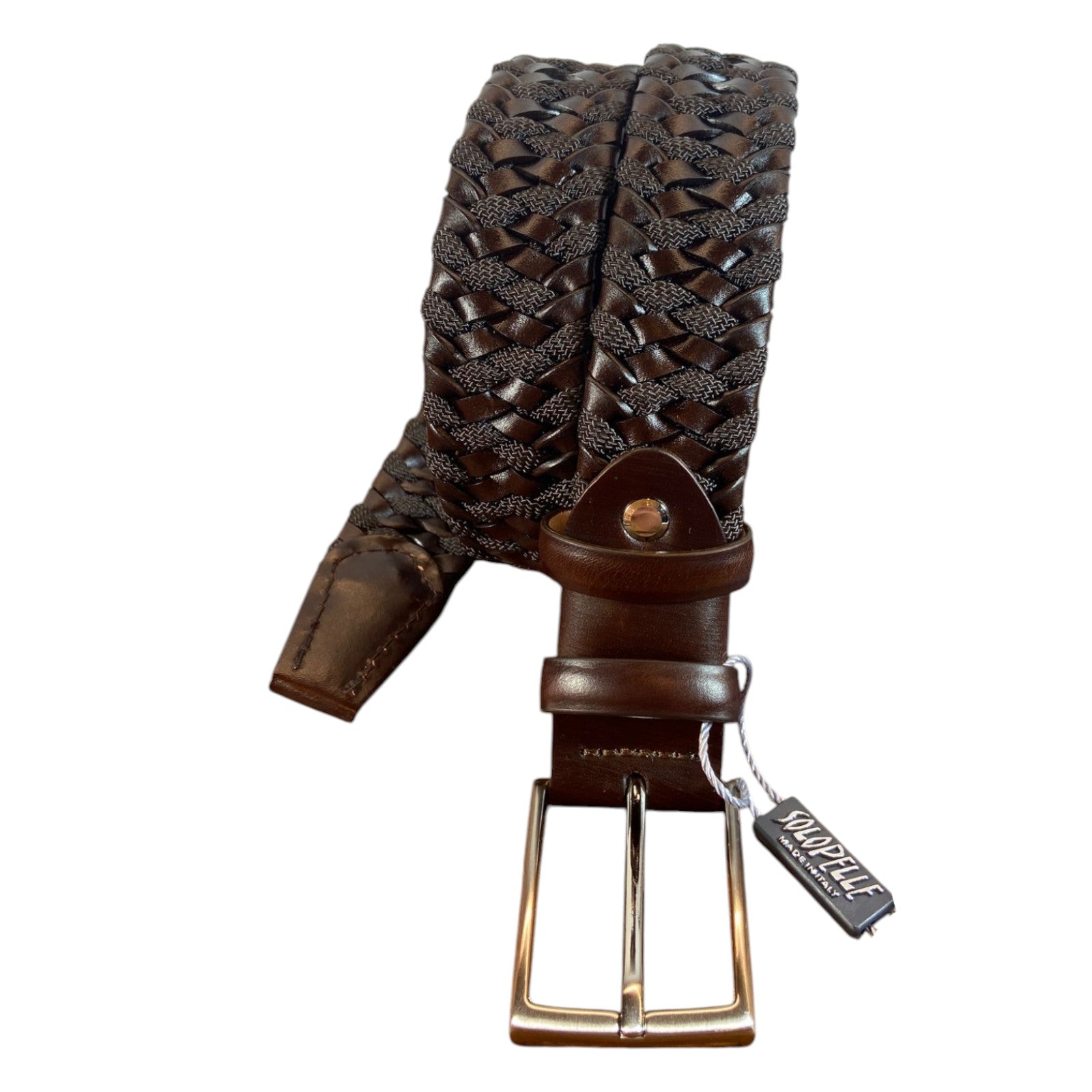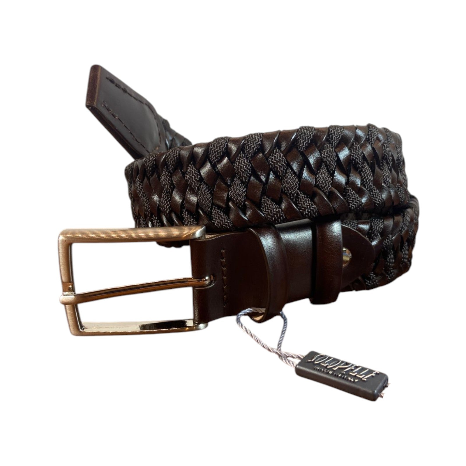 CINTURA ENTRELAZADA DE CUERO AUTÉNTICO Y LONA MARRÓN
